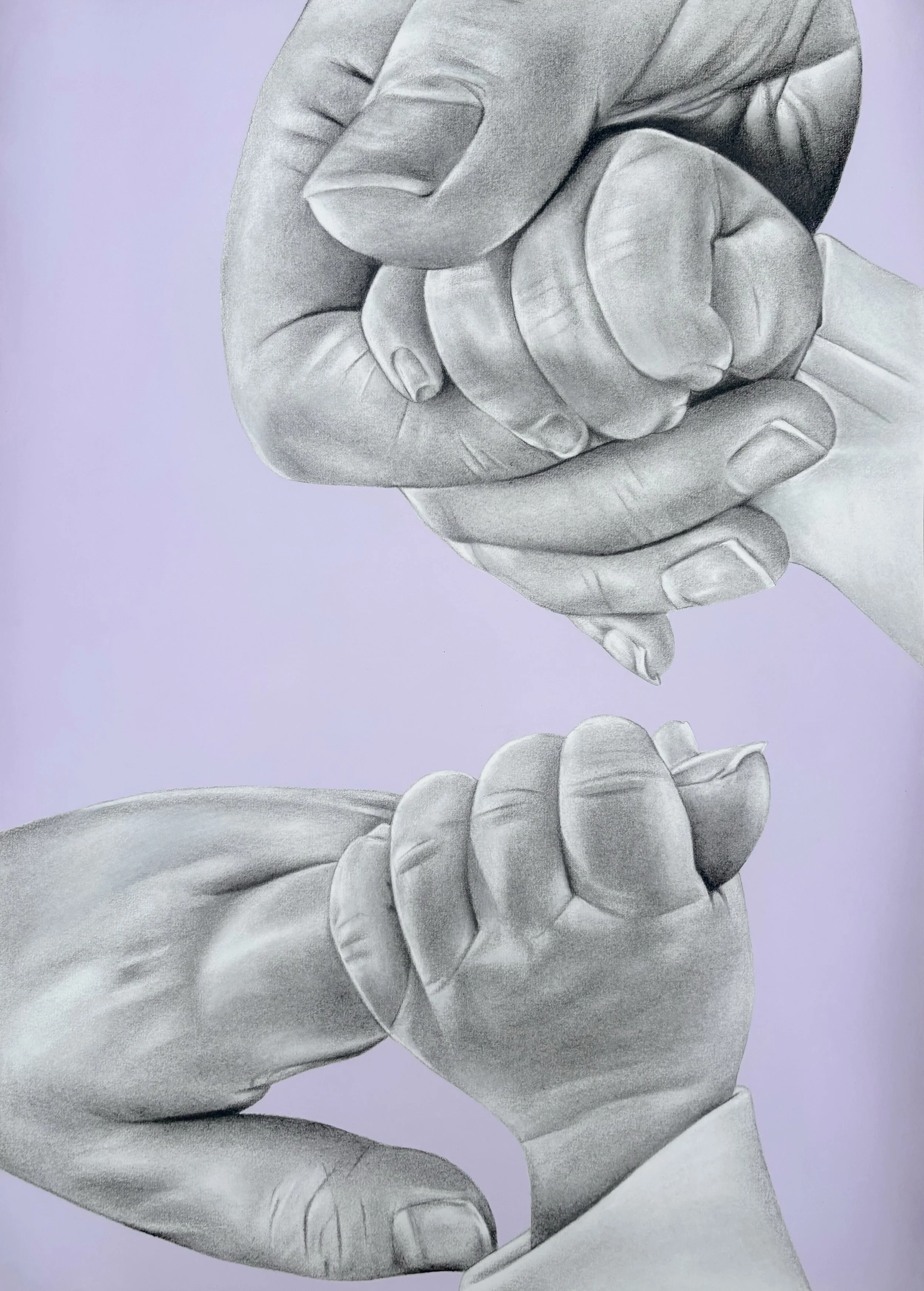 One subject that I particularly enjoy rendering (in addition to faces) is hands. Like faces, hands are also very unique and distinctive. I believe hands can tell a story of the past and within them is the journey of someones life, their achievements etc. The more aged hands appear, the more beautiful and intriguing they are to me, as seen in ‘Like a Fine Wine’. Not only do hands have character, but they are also very intricate. Hands have curves, indents, rises, wrinkles, blemishes, muscles, scars, indentations, knuckles, beauty spots etc. Although hands can seem like a boring or odd choice of subject matter, on the contrary, I think a set of hands can be so captivating, especially when photographed during a moment of action and movement. I find the workings of my own hands remarkable also. I therefore enjoy making a connection between my own hands and the drawn hands they are constructing.